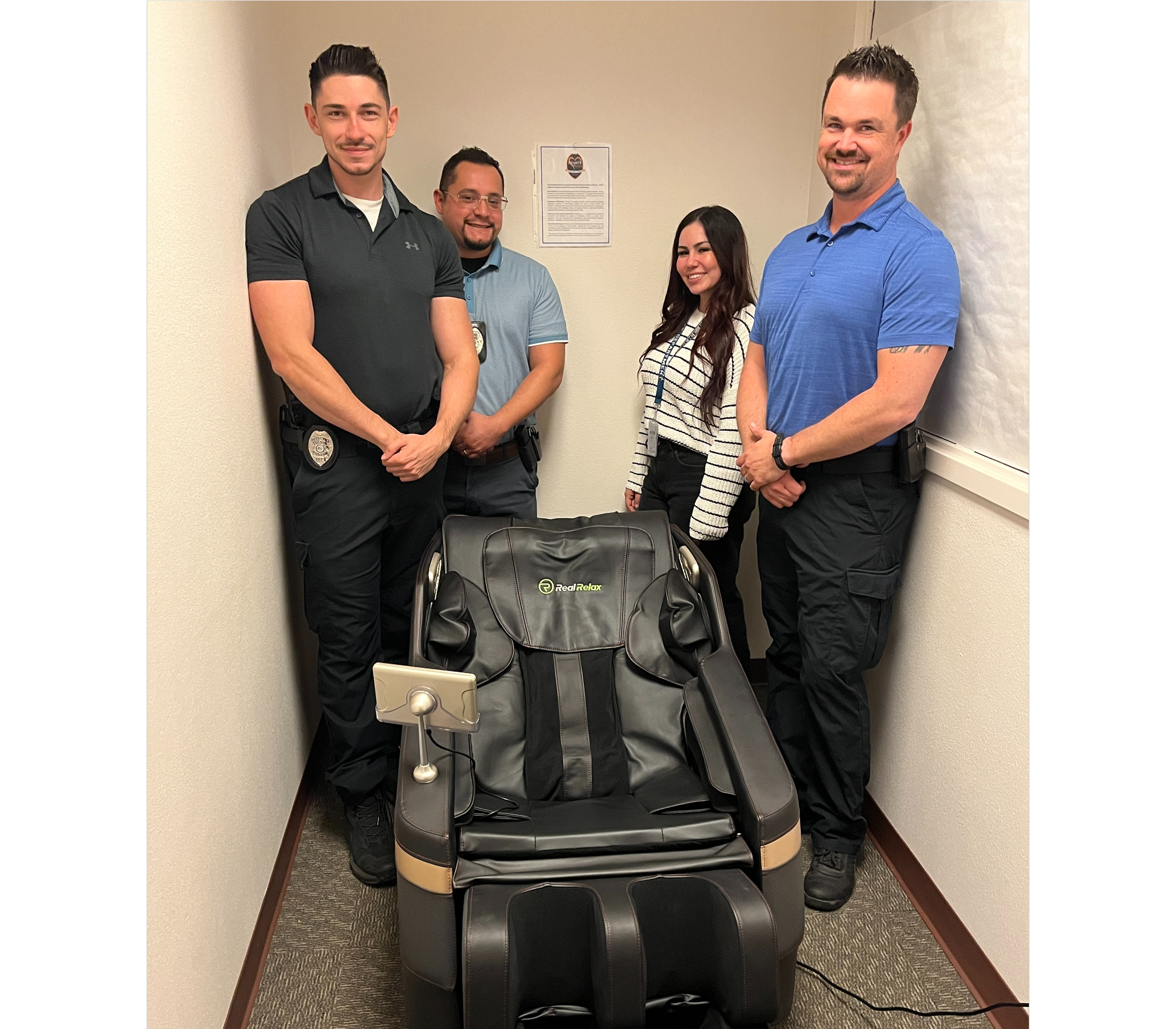 In June of 2024, Lt. Stropka received a Wellness Grant for two massage chairs for the Central Investigations Division. These chairs will help provide investigators with stress relief, relaxation, and improved focus and concentration during their work-day. Congratulations Lt. Stropka! We hope this addition to the investigations work space brings stress relief to our investigators!